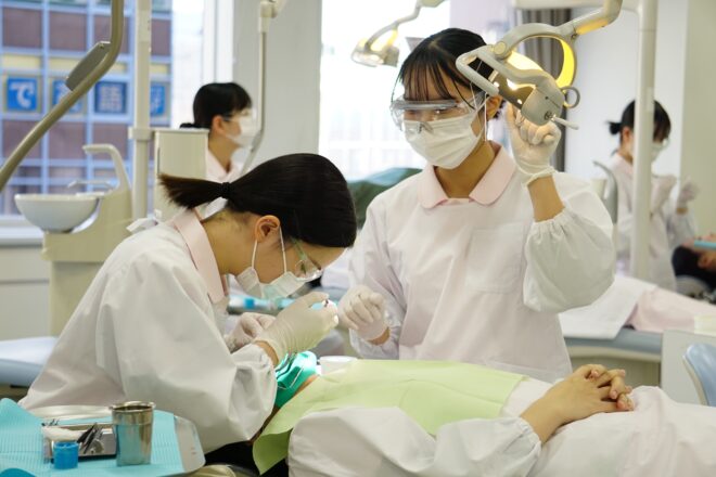 2025.02.06 実習 47期生がラバーダムの相互実習を行いました 47期生(1年生)がラバーダムの相互実習を行いました。 ラバー製のシートとクランプという特殊なバネを使用することで、唾液や血液の侵入を防ぎ、治療する歯だけを露出させて防湿状態で治療を行うことができます。 今回の実習では上顎のラバーダム防湿を行いましたよ🙂↕️