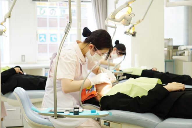 2025.06.03 実習 1年生と3年生の合同実習を行いました 1年生と3年生の合同実習を行いました。 3年生(46期生)の術者は、施術内容の説明やスケーリング・ポリッシング・フッ素塗布、口腔衛生指導を行いました。 1年生の時に先輩から合同実習を受けてからもう2年が経ちますね☺️ 後輩にかっこいい背中を見せることはできましたか? 1年生(48期生)のみなさんは、2年後の自分の姿をイメージできましたか? 3年生にもなると、施術・口腔衛生指導ができるようになっています。 これからの勉強や実習も頑張りましょうね🗒️