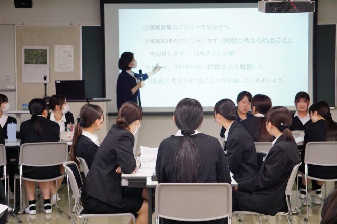 2025.10.06 授業 48期生が歯科衛生過程のグループ発表を行いました 48期生(1年生)が歯科衛生過程のグループ発表を行いました。 患者さんの目標達成をサポートできる歯科衛生士になるために、グループで対象者の情報を分析し、問題点やその解決策をじっくりと考えました🦷✨ 発表では、それぞれのグループが工夫を凝らして、わかりやすく丁寧にまとめた内容を発表しましたよ🙂↕️ これからも患者さんに寄り添える歯科衛生士を目指して学びを深めていきましょう。