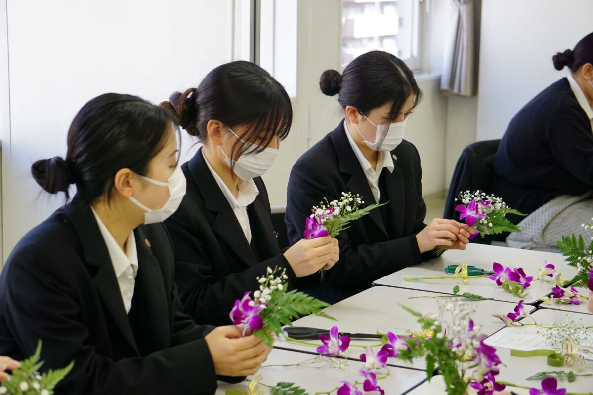 3年生が卒業式で胸に付けるコサージュを47期生が作りました